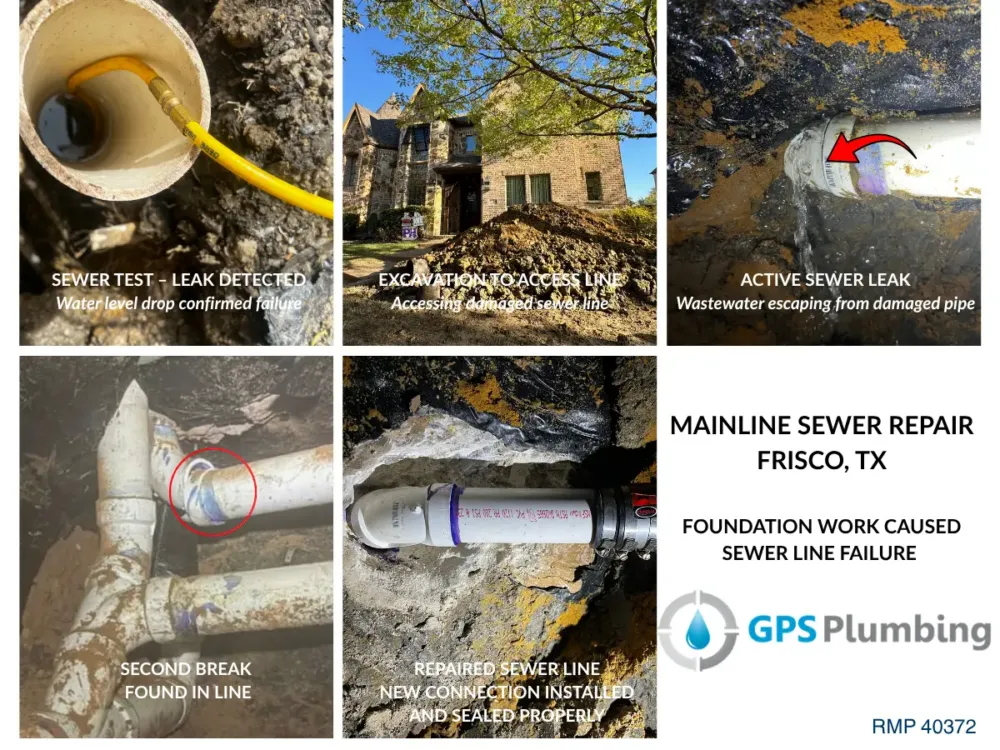 The pipe had failed following foundation repair, which placed additional stress on the plumbing system, a common issue in North Texas homes.