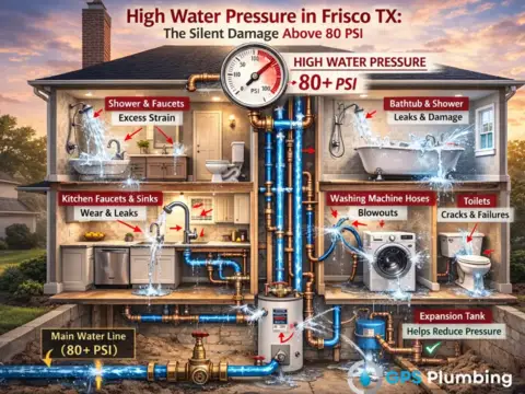 In Frisco and surrounding North Dallas communities, high water pressure is one of the most common and most preventable contributors to recurring plumbing problems.